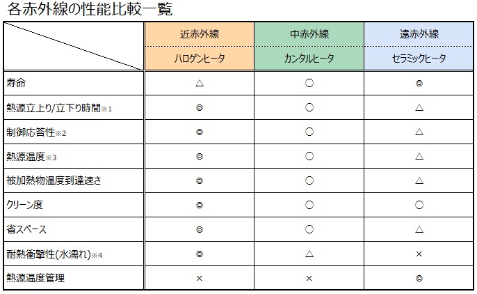 ※3 近赤外線ヒータ2000~3000℃ 中赤外線ヒータ800~900℃ 遠赤外線ヒータ500~700℃