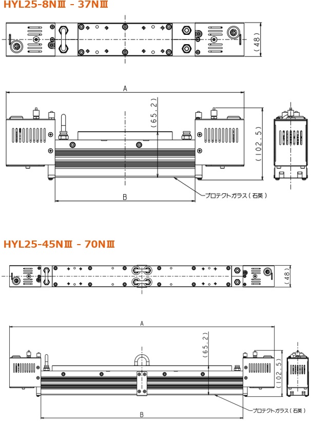 近赤外線ヒーター 線集光タイプHYLシリーズ(水冷式)は、特殊高効率ハロゲンランプから照射される近赤外線を利用し、ライン状の熱源が得られるヒーターユニットです。